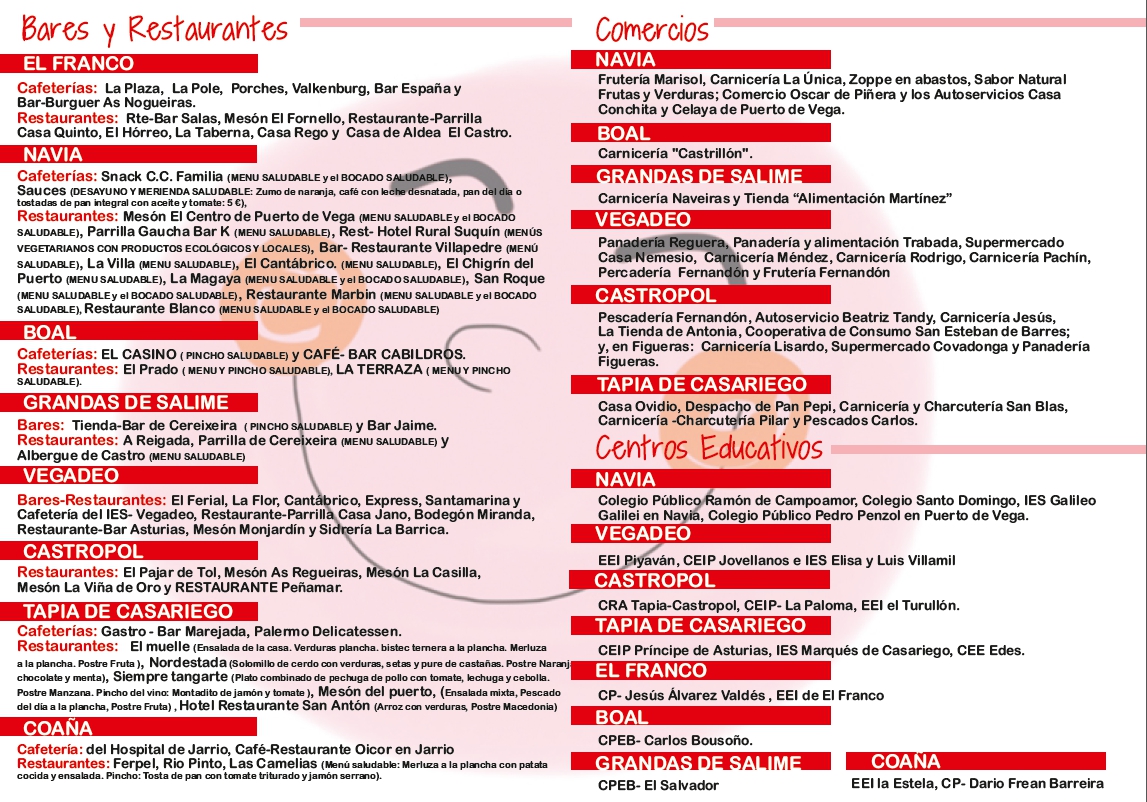 Los bares, restaurantes, pequeños comercios y centros educativos del municipio de Boal que se adhieren a la iniciativa son los siguientes: