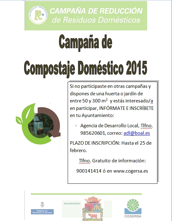 El Ayuntamiento de Boal abre el plazo para inscribirse a todos los interesados/a en participar en la campaña de COMPOSTAJE DOMÉSTICO en el año 2015.