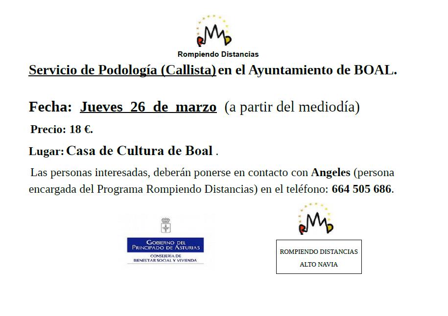 Servicio de Podología mes de marzo. Programa Rompiendo Distancias