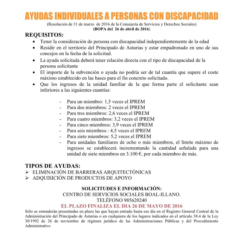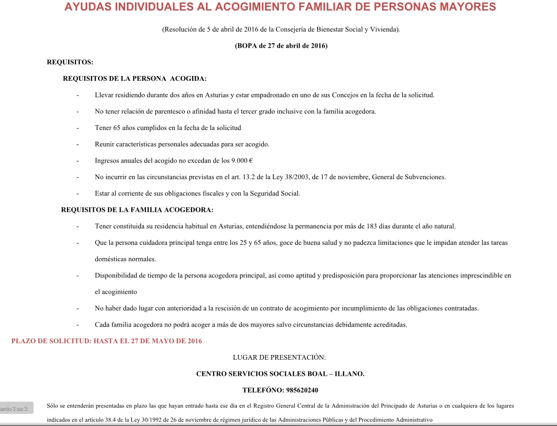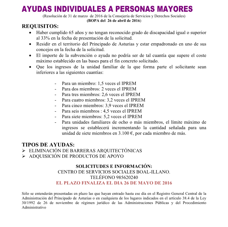 Ayudas individuales de Servicios Sociales: - A personas mayores - Al acogimiento familiar - A personas con discapacidad