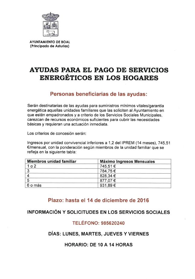 Ayudas para el pago de servicios energéticos en los hogares