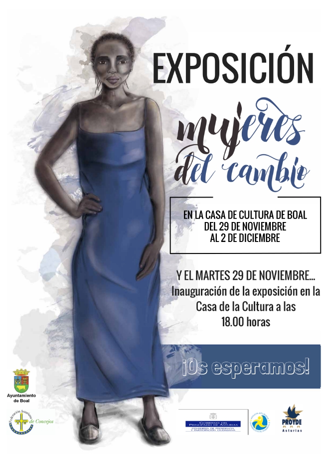 Dentro de los actos por el Día Internacional de la eliminación de la Violencia contra la Mujer, el Ayuntamiento de Boal se suma con la exposición "Mujeres del Cambio" en colaboración con la FACC, la Agencia Asturiana de Cooperación al Desarrollo y Proyde, al objeto de dar a conocer la situación de mujeres que sufren violencia física, piscológica y/o estructural. El martes día 29 se llevará a cabo la inauguración a las 18.00 horas en la Casa de Cultura.