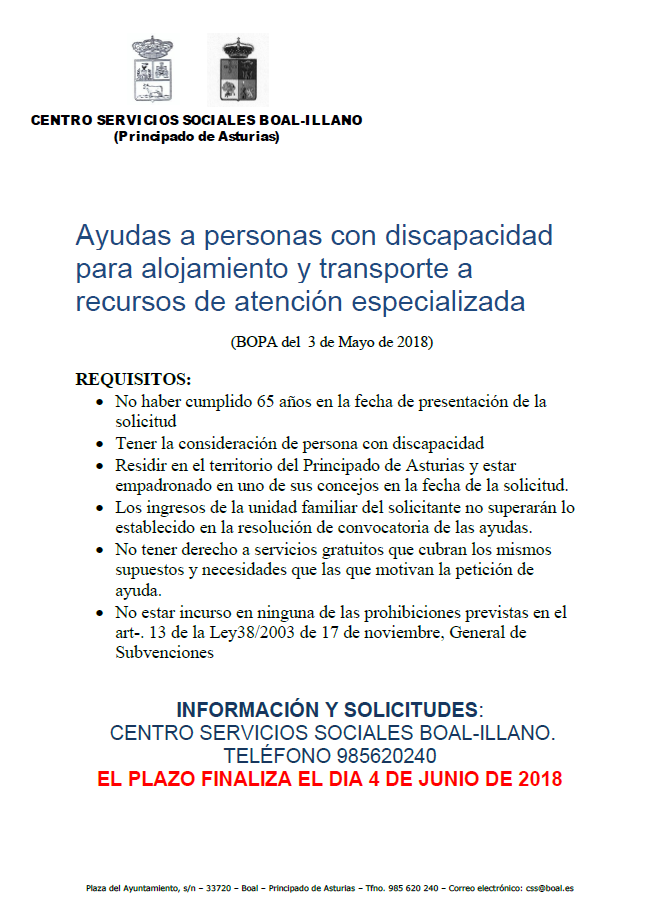 Ayudas a personas con discapacidad para alojamiento y transporte a recursos de atención especializada.
