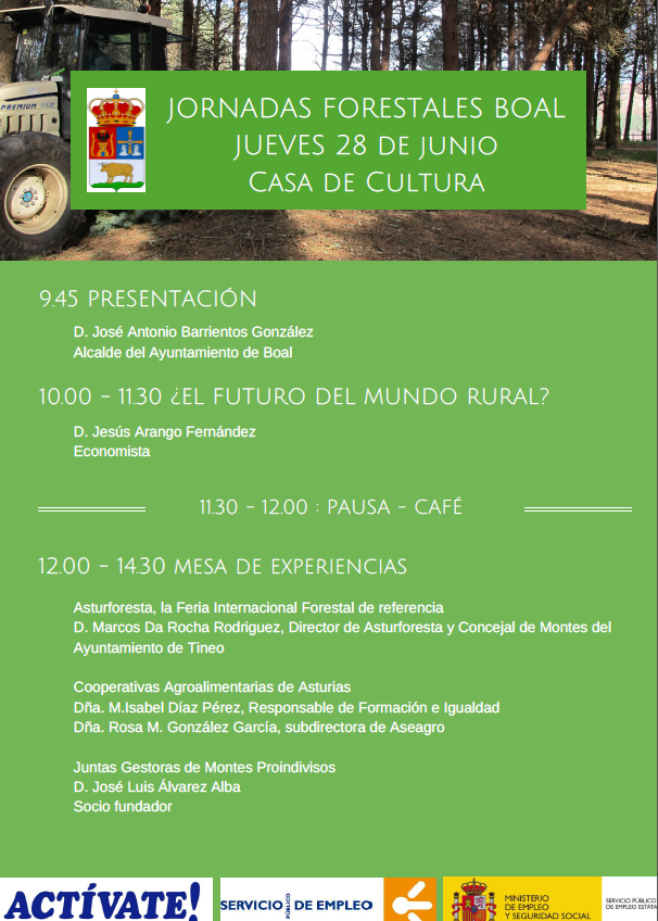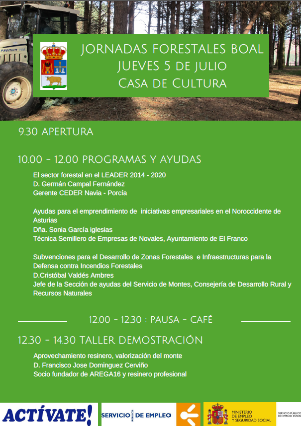 Los jueves 28 de junio y 5 de julio tenemos jornadas forestales en la Casa de Cultura de Boal.