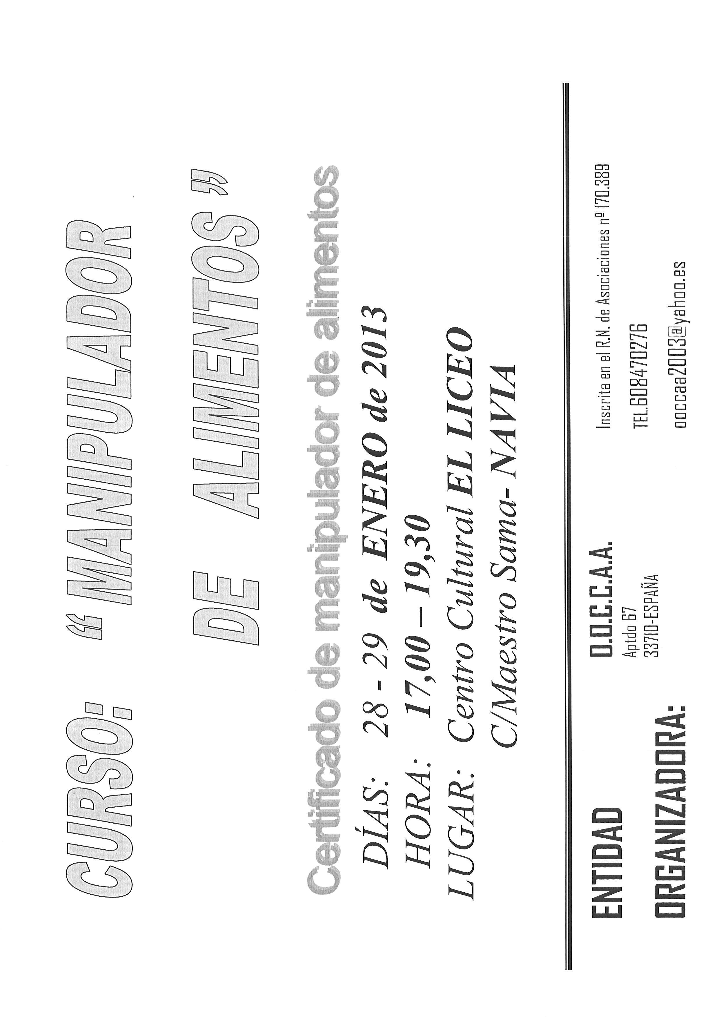 CURSO DE MANIPULADOR DE ALIMENTOS EN NAVIA