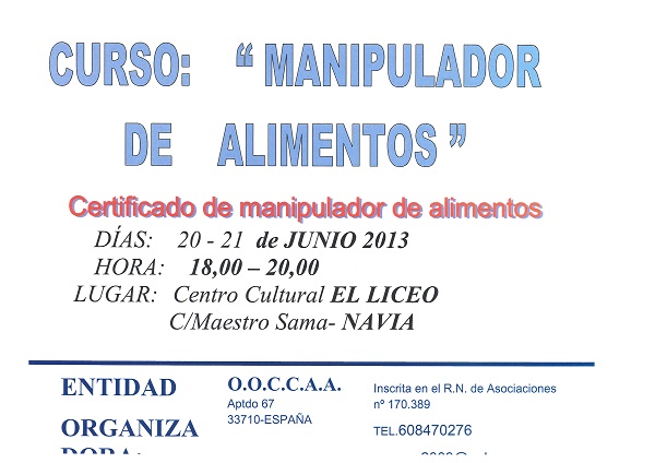 Curso de manipulador de alimentos Navia